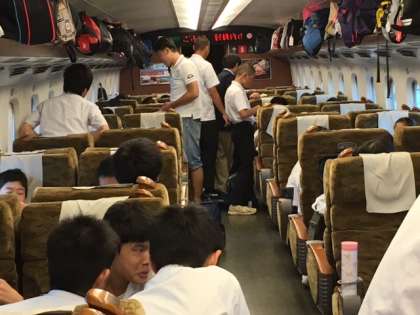 広島駅に一時停車した新幹線は、16時28分に出発しました。 生徒たちは、元気に遊んでいます。