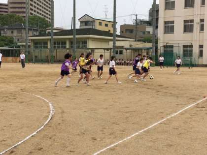 男女ともサッカーで、トーナメント形式で行いました。熱い闘いが繰り広げられました。