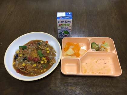 夏野菜のポークカレーライス(揚げ野菜、ゆで野菜)