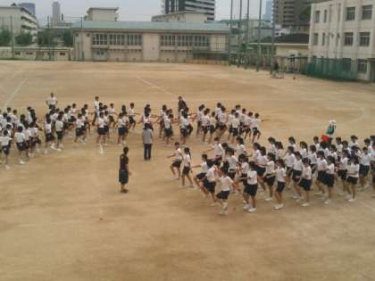 9月12日3・4限目、体育大会に向けての2年生の学年練習があり、整列・行進の練習等を行いました。