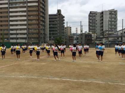 5限目は、女子が運動場でダンス、男子が体育館で組体操の練習をしました。6限目は、男女の場所を入れ替えて練習しました。