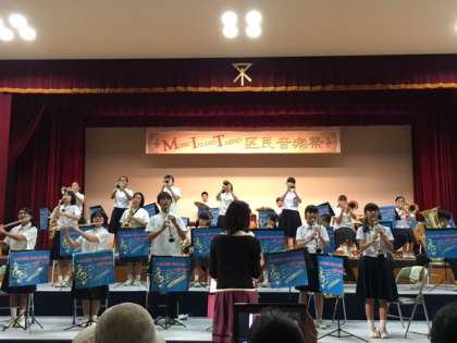 本校吹奏楽部も出演し、「銀河鉄道999」「リトル・マーメイドメドレー」「EXILE TRIBEメドレー」を披露しました。とても楽しいステージングで、拍手喝采を浴びました。