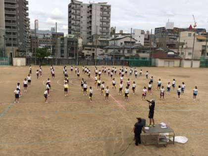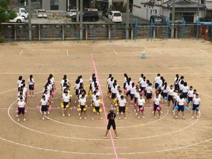 9月21日3限目、グラウンドでの3年生女子の団体練習の様子です。