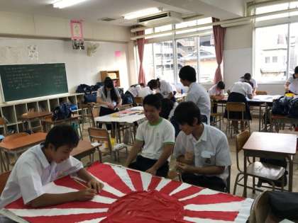 体育大会 学級旗 製作中……