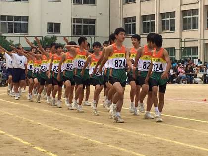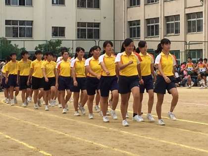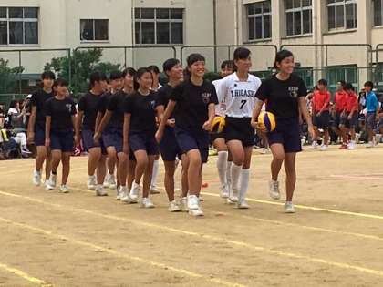 部活動行進 バドミントン部、陸上部、女子バレーボール部