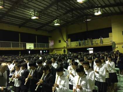 全体で「校歌」と「大阪市歌」の斉唱と「カノン」のリコーダー合奏です。