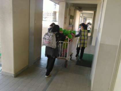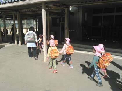 11月2日、大浪保育所の幼児70人あまりと保育士さん達が、津波の避難訓練として本校東門より来校、南館の4階まで階段を上りました。
