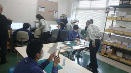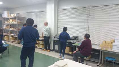 11月14日(月)に大阪市キャリア教育センターで、支援学級生を対象とした職業教育訓練が行われました。本校からも8人が参加して、印刷製本作業とピッキング作業の2班に分かれて実習しました。作業終了後に、制作したノートまたは名刺と修了証をいただきました。実習はみんな楽しかったようです。