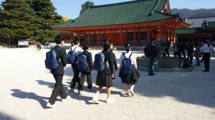 平安神宮の様子です。みんなで考え、協力しながら回っています。