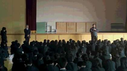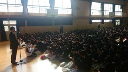 学校長より3学期の過ごし方等のお話があり、生徒指導主事よりルールを守ることや安全生活等についてのお話がありました。
