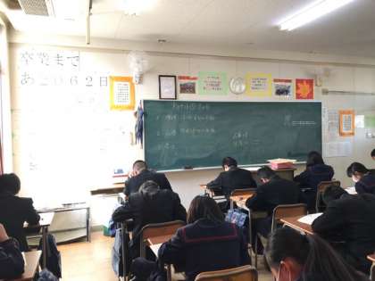 1月12日、3年生は実力テスト2日目です。しっかり取り組んでいます。