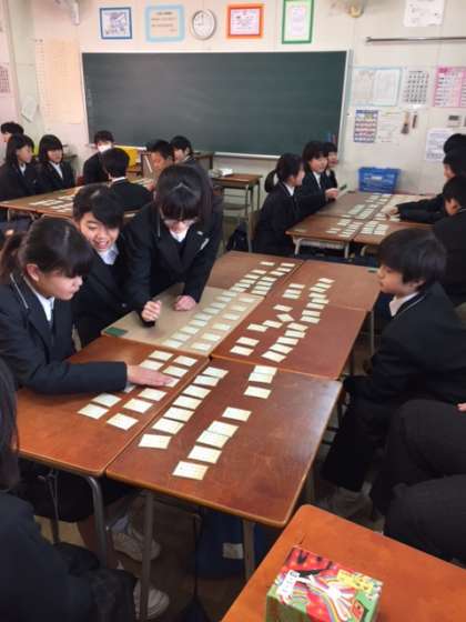 今週3日金曜日の百人一首大会に向け、各教室で百人一首の練習がありました。