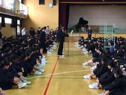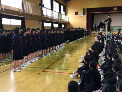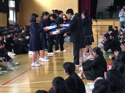次に、代表2名による卒業生からのメッセージ、卒業生の歌「さくら」の合唱、在校生から卒業生への贈り物(卒業式用コサージュ)の贈呈がありました。とても素晴らしい式でした。