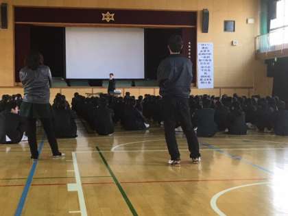 携帯電話等に関わるビデオを鑑賞してから、少年が犯罪を犯したらどうなるのかやLineなどのトラブルの話など総合的にお話をしていただきました。今後の生活に大いに参考になりました。