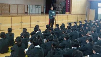 学校長から今年度1年間の心構えや、生徒指導主事から学校生活や地域での生活についての注意がありました。