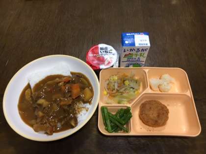 カツカレーライス(一口とんかつ)・グリーンアスパラガス