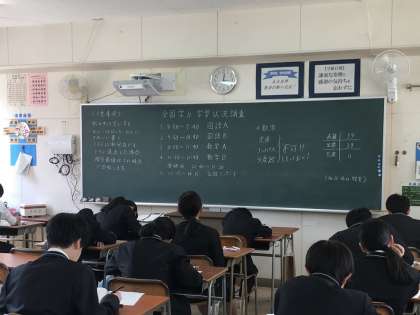 国語A・国語B・数学A・数学B・生徒質問紙調査で5限目まであります。3年生も熱心に取り組んでいます。最後まで頑張れ!