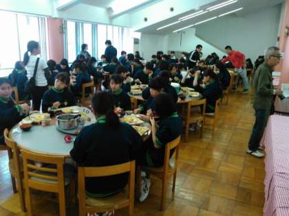 みんなで用意して朝食を食べます。ヤクルトつきです。