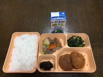 みそカツ 肉じゃが 小松菜のおひたし のりの佃煮 米飯 牛乳