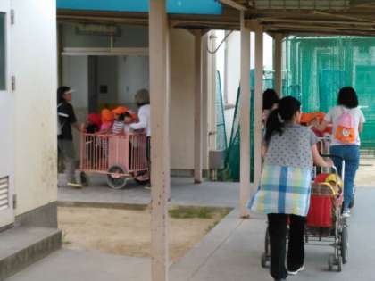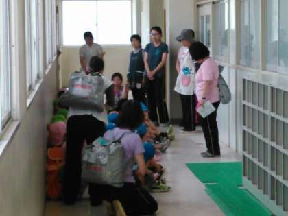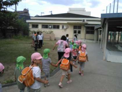 6月12日、本校近くの大浪保育所の津波に対する避難訓練で、幼児たちが本校に避難し校舎3階まで登る訓練をしました。