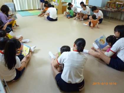 6月13日2限目、大浪保育所にて、家庭科の授業の一環として「ふれあい保育実習」が行われました。