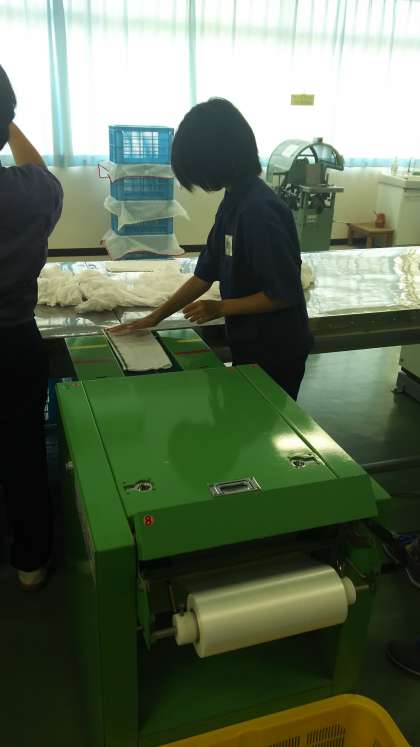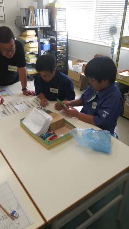 事務補助・ピッキング作業と、おしぼり加工の作業に分かれて実習に取り組み、伝票記入・商品の棚出し、おしぼりの洗濯・ビニール詰めなどを行いました。
