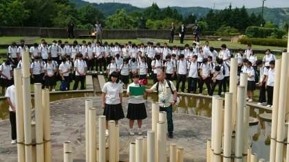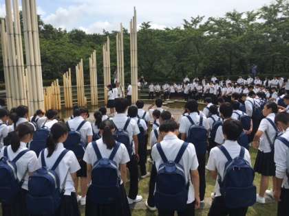 人道の丘モニュメント前で、生徒代表が平和宣言を読みあげました。