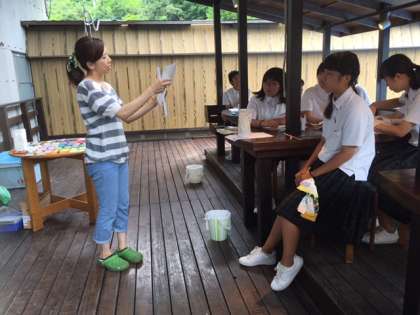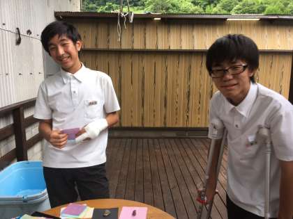 ラフティングの不参加者は、残ってランプシェードを制作しました。