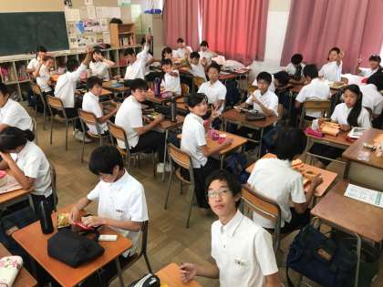 7月11日火曜日、1学期最終の昼食風景です。2学期が始まる8月末まで、しばらく昼食なしとなります。