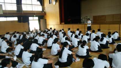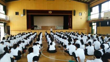 7月13日4限目、体育館において、修学旅行の事後指導が行われました。