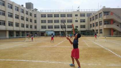 7月29日(土)に、大阪市秋季大会第3ブロック予選が本校テニスコートで行われました。今回は3ペアずつによる団体戦が行われ、本校からは男子4チーム、女子3チームが出場し、男子Aチームが決勝で大正西中Aに1−2で敗れ準優勝となりました。女子ではAチームが準々決勝で大正北中に1−2で敗れ、敗者復活2回戦でも0−2で敗れて6位となりました。女子はベスト5に入れず市大会への出場権を得ることができませんでした。ベスト4以内が条件の男子はAチームが8月6日(日)に明星中学校で行われる大阪市秋季大会に出場します。