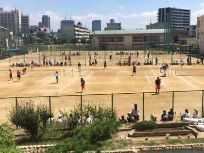 8月24日、本校グラウンドにおいて、ソフトテニスの大会が開催されています。