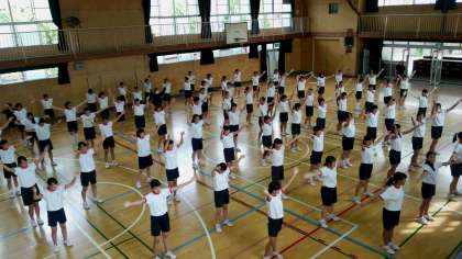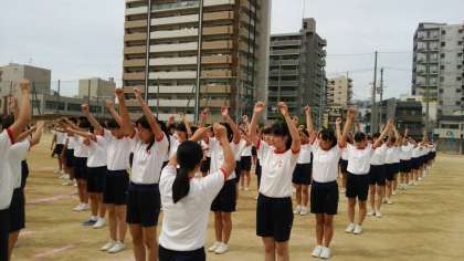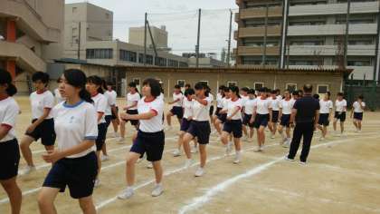 5時間目は運動場にて入場行進の練習を行いました。6時間目は体育館で、それぞれの競技の練習をしました。