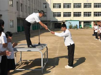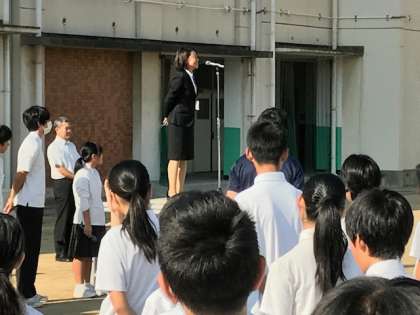 9月25日、全校集会において、教育実習生の紹介・あいさつと賞状伝達がありました。