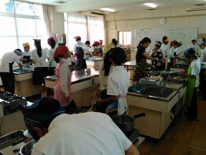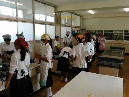 10月10日3・4限目、1年2組の調理実習が行われています。