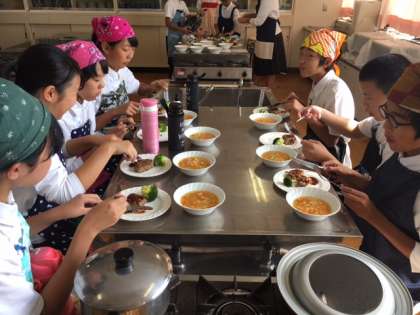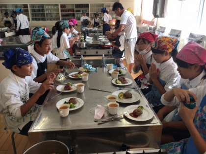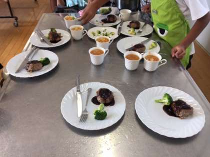 2組もおいしそうなハンバーグとミネストローネができあがりました。