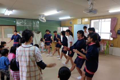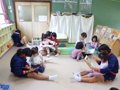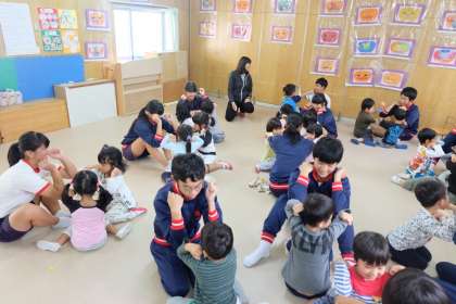 手遊びや読み聞かせ等をしてあげました。生徒たちは口々に「可愛い」を連発していました。