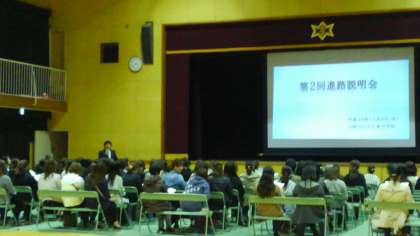 体育館に3年生の保護者を中心に100名弱の保護者の方にお集まりいただきました。