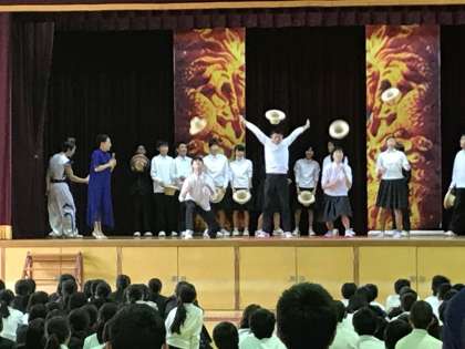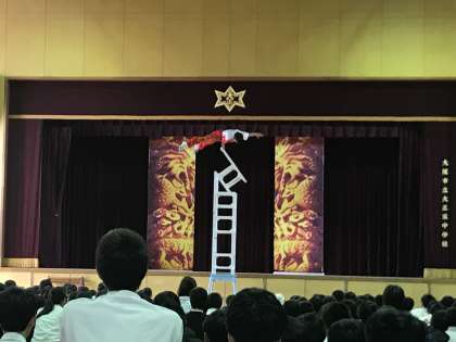 5、6時間目に芸術鑑賞として中国雑技団の方々に来ていただき様々な演目を鑑賞しました。人間離れした柔軟性や、躍動感あふれる輪くぐりに大きな歓声があがっていました。生徒体験コーナーではたくさんの生徒が舞台に上がり、楽しそうに基本技にチャレンジしていました。最後の、椅子を積んだ上での逆立ち技には皆が手に汗にぎり、成功したときには大変喜ばしい様子で拍手をし、鑑賞を終えました。