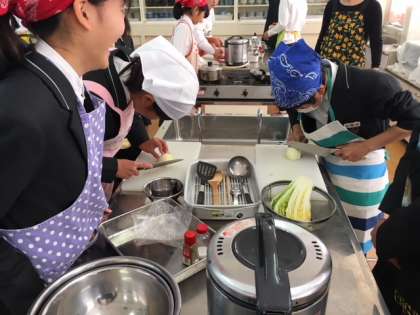 11月13日3・4限目、家庭科の調理実習が行われています。