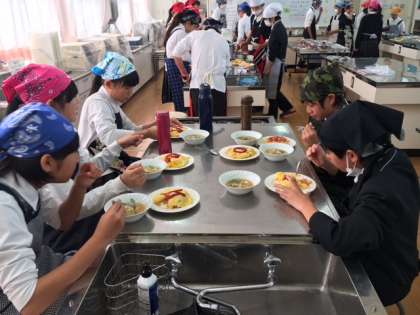 おいしそうな「ふわふわとろとろオムレツ」と「白菜スープ」ができあがりました。