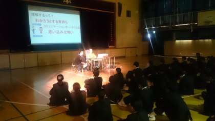 三年生は、2,3時間目に実際に脊髄性進行性筋萎縮症という障がいをお持ちの男性をお招きして、障がい者理解教育が行われました。これまでの経験や信念をもとに、私たちが障がいをどう捉え、どう接していけばよいか、丁寧に話してくださいました。ありがとうございました。
