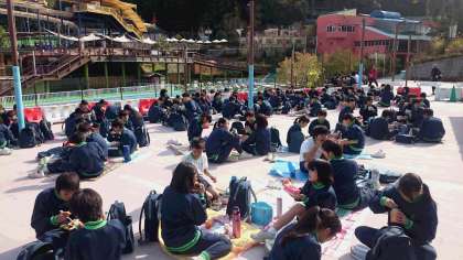 昼食を済ませてから、午後は班ごとに自由行動になります。朝の到着が少し遅れたので午後の活動時間を延長する事になりました。