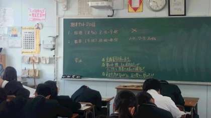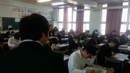 今日は、国語と数学のテストです。1年生1組と4組の国語のテスト風景です。