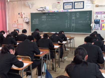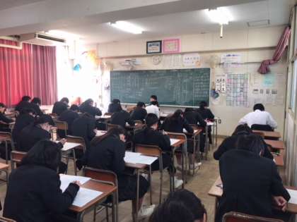 2学期たくさんあったテストも今日明日と今週末の実力テストで最後です。進路決定も近づいて、みんなが必死な様子でした。写真は2組と4組です。