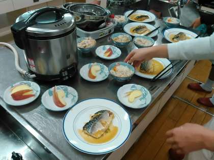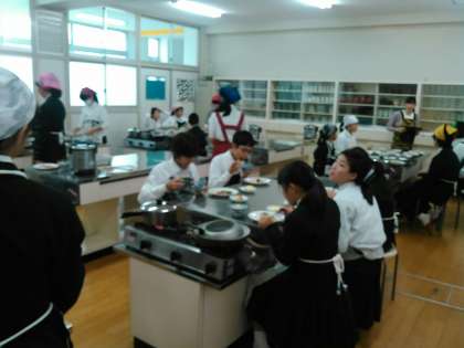 風邪で欠席する人がいて、人数が少ない班もありましたが、みんなで力を合わせて完成です。さあ、おいしくいただきましょう。