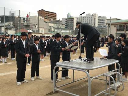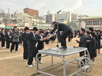 12月11日、朝の全校集会で賞状伝達を行いました。