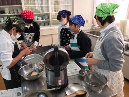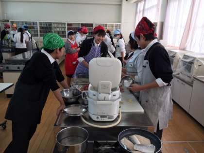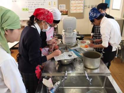 12月18日3・4限目、2年2組の調理実習が行われています。