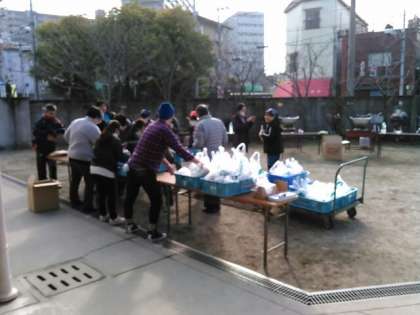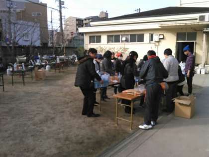 PTA実行委員の方を中心に、学校元気アップの協力のもと豚汁の炊き出しの準備が行われています。