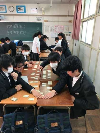 本日の6限、総合の時間に百人一首の練習を行いました。覚えた札の枚数が増え、上の句から取り合うことが多くなっています。1月26日の百人一首大会に向けて、一枚でも多く覚えてください。